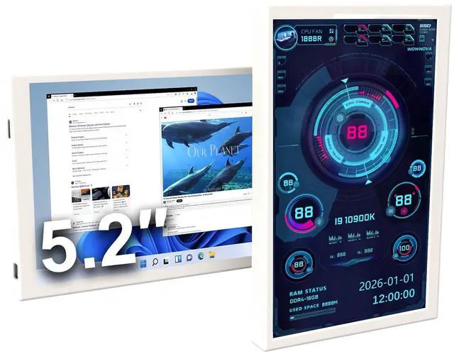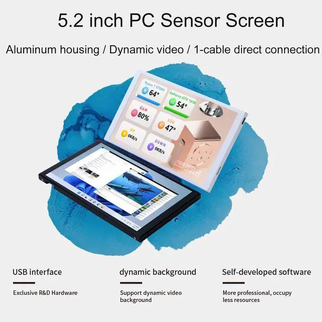 ^^ NEW DESKTOP DISPLAY MODE ADDED!! Our 5.2 inch monitor support switching to desktop mode as a EXTENDED SCREEN. ^^ Just One Cable Connection & Great Viewing AnglesOur 5.2 inch computer temp monitor only needs one single USB-C cable or one 9pin cable. So it can be mounted completely internally off a USB header without the need of a port on the GPU which is a huge plus to you. No HDMI required, No power required. IPS full view. 5.2 inch panel screen.