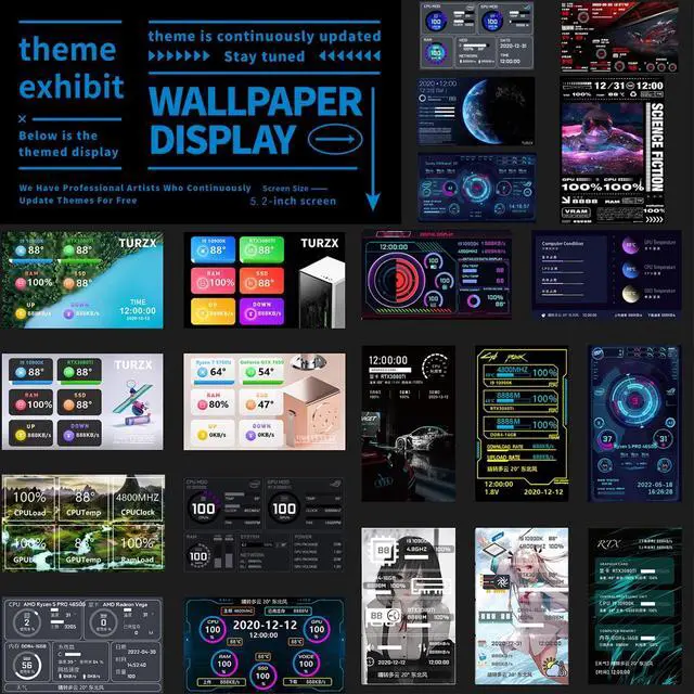 Upgraded 5.2" Smart PC Sensor Panel with 1 Click to Get Started Quickly Self-Developed SoftwareEasy Setup and Get Started Fast. Our 5.2 inch lcd screen inside pc case works great with our English version software. You can use this with our software as a "second monitor" to view computer's temperature and usage of CPU, GPU, RAM, FPS and HDD Data etc. More professional and occupy less resources. COMPATIBLE WITH WINDOWS 10/11 ^^ Dynamic Video Theme Supported & Cool!! There are a lot of cool and cute dynamic videos preset in our 5.2 inch lcd screen, and the pc case screen supports customizing your own dynamic video theme.