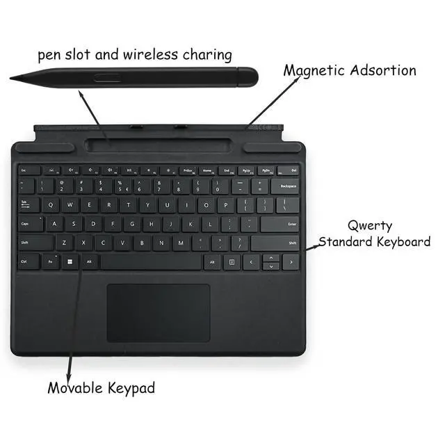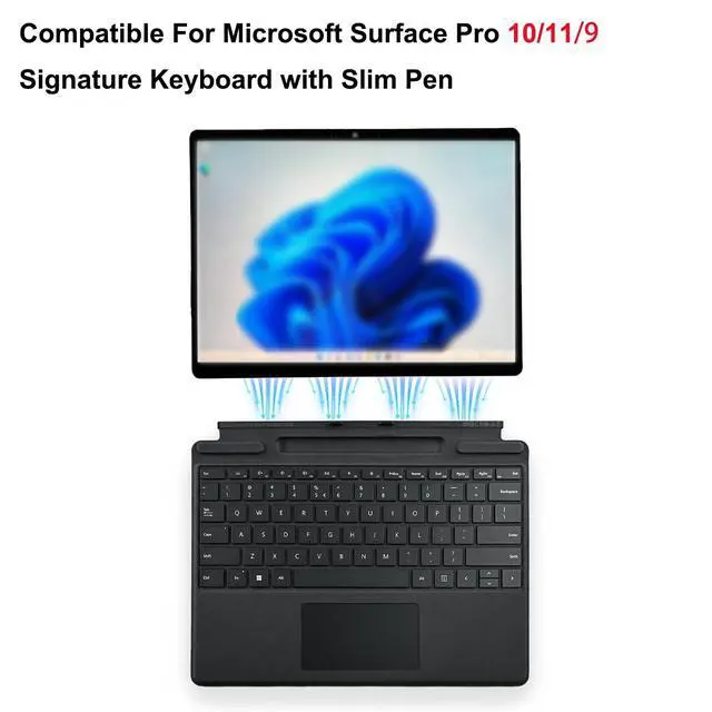 Compatible with Microsoft Surface Pro 11, Surface Pro 10, Surface Pro 9, Surface Pro 8, Surface Pro X. ^^ The keyboard has a magnetic attachment feature that allows it to be securely attached for Microsoft Surface. ^^ The keyboard has a Surface Slim Pen pen slot that wirelessly charges the pen while storing it, allowing for both typing and on-screen writing. ^^ Connect the surface pro special edition professional keyboard cover and enjoy a comfortable and extraordinary typing experience.