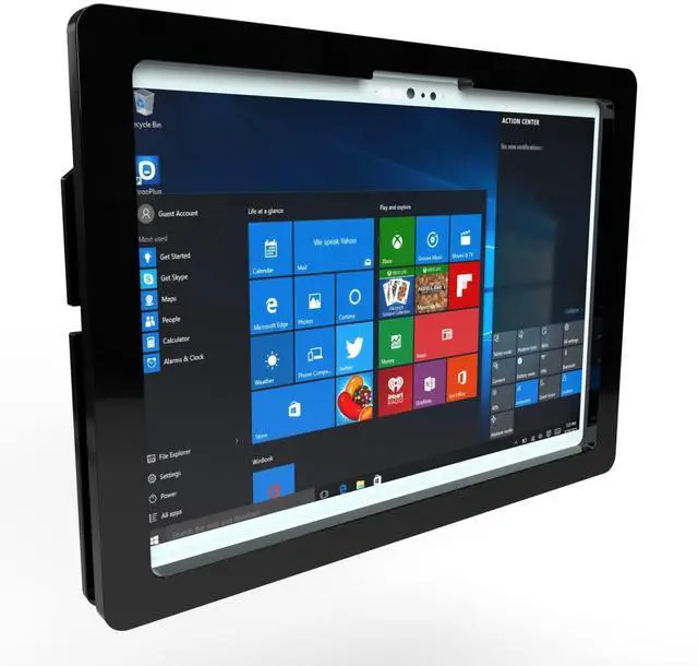 Weight: 1.2 lb ^^ Security screws Anti-theft security design, Used as Time Clock, POS, Kiosk, Store Display, Trade Show display ^^ Total Screen Access For Full Touch Function, Front camera, Power & volume button accessible ^^ Bundled Metal Wall Mount kit, supports both Landscape and Portrait Display Modes