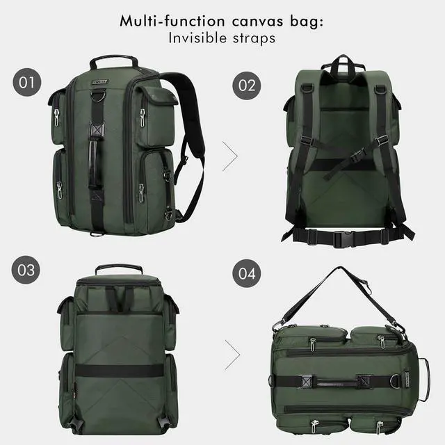 ^^ Multifunctional Backpack: This traveler backpack come with a removable and adjustalbe shoulder strap. The backpack straps can be hidden in the back compartment. You can easily convert it into a duffel bag, crossbody bag, shoulder bag, tote bag.