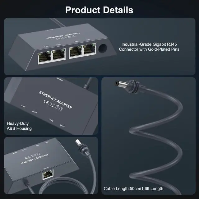 Solves Starlink's port shortage while expanding network capacity ^^ PRO-GRADE SYNERGY The Starlink Ethernet Adapter Gen 3 integrates seamlessly with Starlink Gen 3 routers and Mini Dishes, operating 24/7 to ensure stable multi-device connectivity. Engineered for demanding usevideo calls, remote work, online gaming, 4K streaming, and large transfersit delivers consistent performance anywhere. ^^ Plug and Play Requires no drivers or technical expertise. Simply connect to your Starlink Kit and devicesdual-color LEDs (green/yellow) instantly indicate port status and auto-negotiate optimal connections for network optimization. ^^ After-Sales GuaranteeYou will receive a 12-month product quality warranty from the Ablian brand.