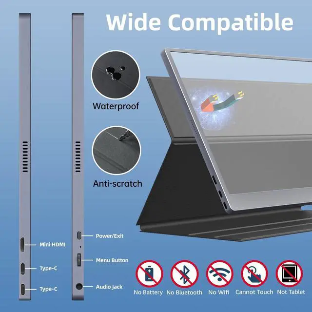 HDMI: Multi-functional portable laptop monitor has two signal input ways: USB C or Mini HDMI. This external monitor is compatible with laptop, Macbook, desktop computer, PS4/5, Xbox, mini pc etc. No driver needed ^^