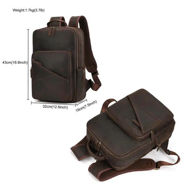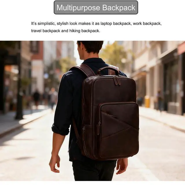 Compact & Versatile Shoulder Bag: Suitable for work, commute or travel, this leather backpack combines functionality and fashionable design effortlessly. It is ideal as a laptop bag, travel backpack, work backpack, business backpack, casual daypack, lunch backpack and so on. It is a perfect gift choice for men, women on Christmas, Valentines, birthdays, anniversaries and so on.