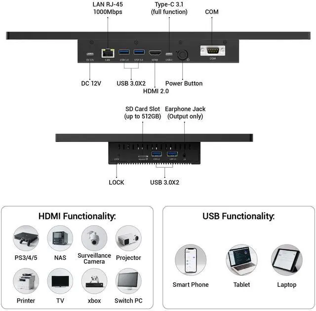 Its compact, rugged build houses a Win11 Pro system, making it an ideal embedded solution for harsh environments ^^ Full-Spectrum High-Speed ConnectivityStay connected with robust wireless and wired options. This industrial panel PC supports Wi-Fi 5 and Bluetooth 5.0 for fast, stable wireless communication, alongside a Gigabit LAN port for maximum network reliability in any operational setting ^^ Flexible Mounting SolutionsAchieve flexible deployment quickly. The included PPC mounting hooks and standard VESA interface allow for seamless integration into cabinet systems, wall mounting, or desktop setups, catering to a wide range of application scenarios