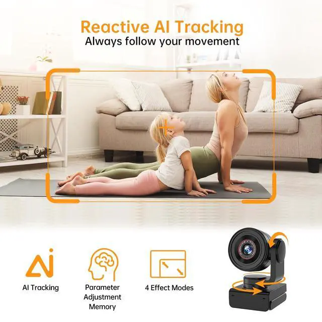 ^^ [Smooth PTZ with Presets] Pan 330 and tilt 180 with ultra-quiet brushless motors. Save up to 6 preset angles and recall instantly using the included RF remote; 1/4" UNC mount fits tripods and stands. ^^ [Dual Noise-Canceling Mics & Broad Compatibility] AI-enhanced stereo mics capture clear voices up to ~5m away. Works seamlessly with Windows, Mac, Linux, and Android on Zoom, Teams, Meet, OBS, and more. Includes privacy mode, four scene modes (Standard, Live, Green Screen, Entertainment), and auto memory of settings.