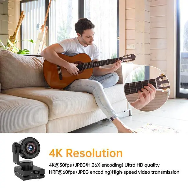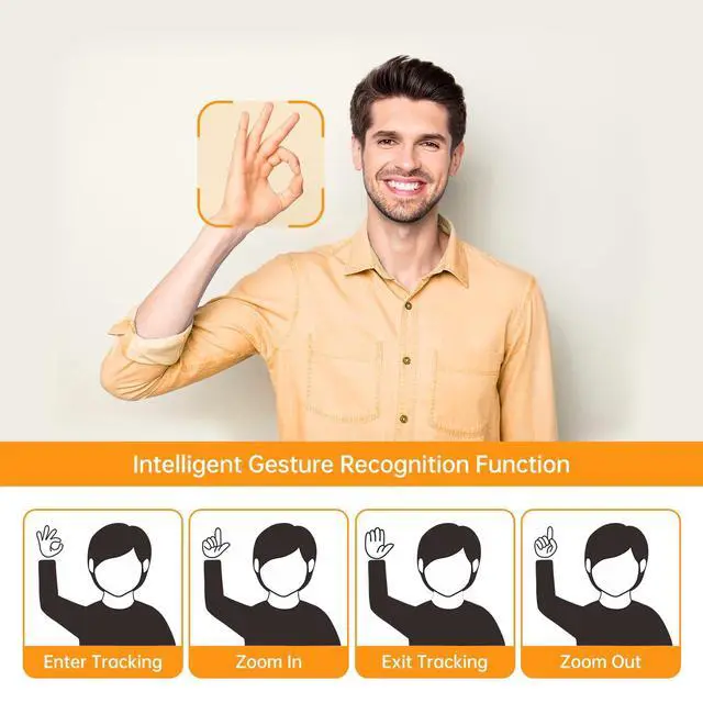 [Ultra-Clear 4K30 & Smooth 1080p60] Capture every detail in 4K at 30fps or enjoy silky-smooth 1080p at 60fps. Supports YUY2/MJPEG/H. 264/H. 265 formats via USB-C 3.1; fully plug-and-play (USB 3.0 port recommended). ^^ [AI Tracking with Simple Gestures] Activate subject tracking with an OK sign, zoom with hand gestures, or exit with a palm. LED indicators show camera mode and privacy/standby status for instant feedback. ^^ [Rapid TOF Autofocus & HDR] Time-of-Flight autofocus locks in as fast as 0.2 seconds. HDR imaging enhances highlights and shadows, while a 92 wide-angle lens ensures everyone fits into frame.
