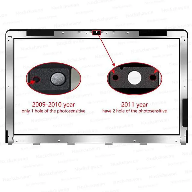 ^^ Description: This is the glass panel with 2 photo sensor hole near the iSight camera, making it backwards compatible with the Mid 2011 and Late 2011 iMac releases.