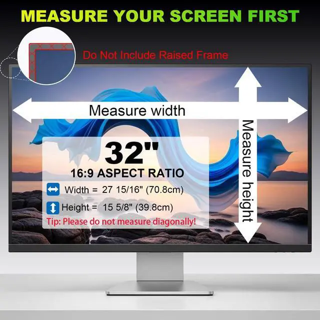 Compatible with Various Monitor Brands Fits monitors with a width of 27 15/16 inch ( 70.8 cm) and height of 15 5/8 inch ( 39.8 cm). Compatible with HP, Samsung, Dell, Lenovo, Acer, ASUS, LG, ViewSonic, etc.