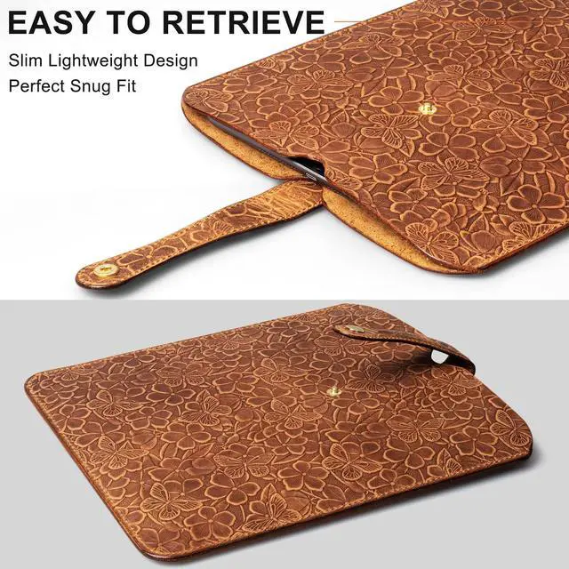 Compatibility: Specially designed for iPads and laptops 13 inches and below. ^^ Quality Leather SleeveThis laptop inner case is made of high-quality leather. Tight stitches to keep edges from bursting. with time the leather is polished and acquires a slightly glossy effect. ^^ Personality DesignUnique style design, personalized buckle, novel and atmospheric, spacious opening, can be placed with Magic Keyboard/regular protective case and pen. ^^ Lightweight & StreamlinedOur sleeve's slim, lightweight design makes it the ideal choice for minimizing bulk in your backpack, briefcase, or handbag. It's perfect for commuters, travelers, or anyone on the go, blending effortlessly into your lifestyle. ^^ Worry Free After SaleIf you have any question about this laptop sleeve, please feel free to contact us through the message center, we will provide a solution that will please you.
