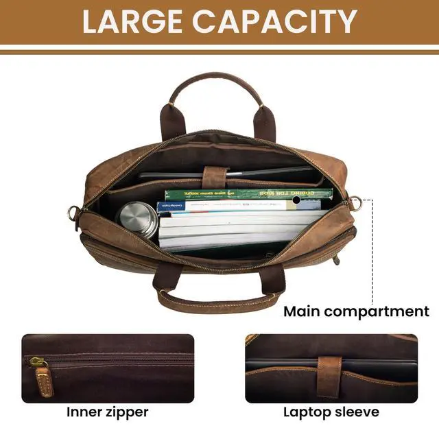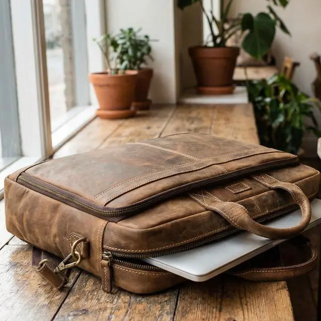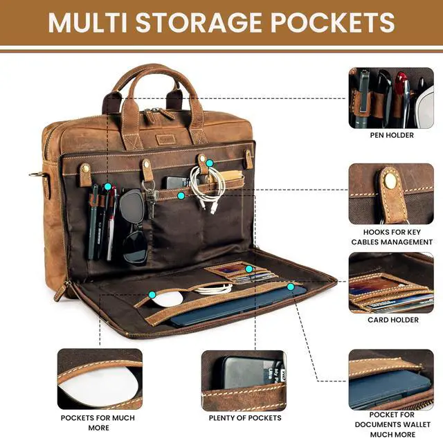 DescriptionThe Rasava Genuine Leather Laptop Messenger Bag is crafted from premium top-grain leather, offering durability and timeless appeal. Designed by skilled craftsmen, it features genuine YKK zippers and antique brass fittings for enhanced strength and style. This bag fits laptops up to 16 inches and includes multiple compartments to keep your essentials organized. It is ideal for professionals, students, and travelers who need a blend of function and sophistication. The adjustable and detachable shoulder strap ensures comfortable carrying throughout the day. A built-in trolley strap allows for easy attachment to your suitcase, making travel hassle-free.