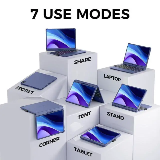 It allows you to control the iPad in a whole new way. Easily edit documents and surf the web, signifcantly boosting your productivity and providing a seamless, convenient operating experience. ^^ 7-Color BacklitThis keyboard for ipad 10th generation features a rainbow backlight. iPad 10th generation case with keyboard has 3 adjustable brightness levels, allowing you to customize the backlight brightness according to your personal preferences and ambient lighting conditions. Whether you're using it in a dimly lit room or a brightly lit space, this feature will provide you with a more enjoyable typing experience when using the 10th gen ipad case with keyboard.