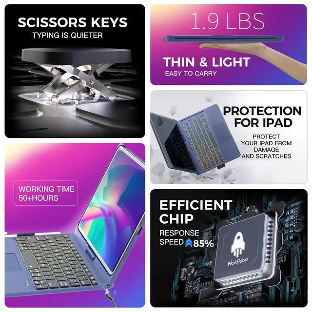 In addition, there is a row of iOS shortcut keys on the top of the keyboard, allowing you to quickly adjust the brightness and volume of the iPad. It is a rechargeable wireless keyboard that connects via Bluetooth, providing a hassle-free user experience. ^^ 1-Year Product Service Within 1 year after purchase, if you encounter any issues with your iPad 10th generation case with keyboard, NOKBABO will provide a replacement for the 10th gen ipad case with keyboard within 1 year. We will arrange a professional after-sales team for you, your questions will be replied to within 12 working hours, allowing you to fully enjoy the high-quality service provided by our product.