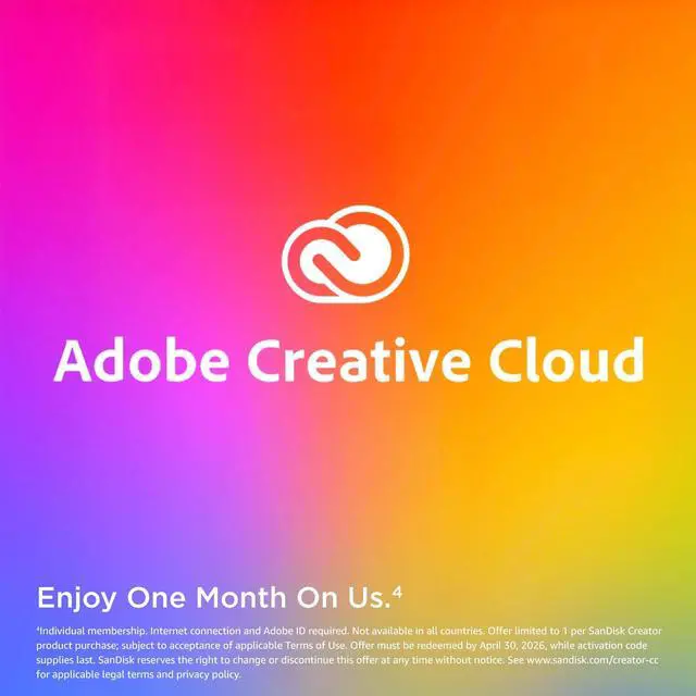 Elevate your content with the SanDisk Creator SD UHS-II Card, a high-performance memory card for creators who require professional-grade image and video capture with exceptional reliability. With capacities from 128GB up to 1TB, 1 you can shoot your inspiration, edit your shots, and publish your posts even faster, giving you time to grow your following and refine your craft. And with one month of Adobe Creative Cloud4 on us, youll have access to even more tools to help make sure your execution matches your vision.