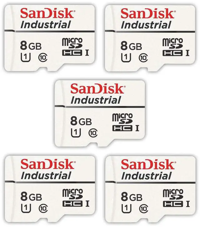 Bundle includes (5) 8 GB microSD SanDisk Industrial memory card in Jewel Cases and (1) Everything But Stromboli Multi-Slot Card Reader - Includes SD, Micro SD, M2, and MS slots for easy transfer.