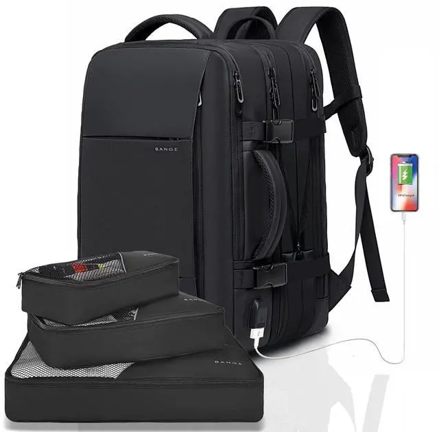 TRAVEL BACKPACK WITH THREE CUBES: BANGE backpack has large capacity with three cubes, and you can classify your different items in the cubes.
