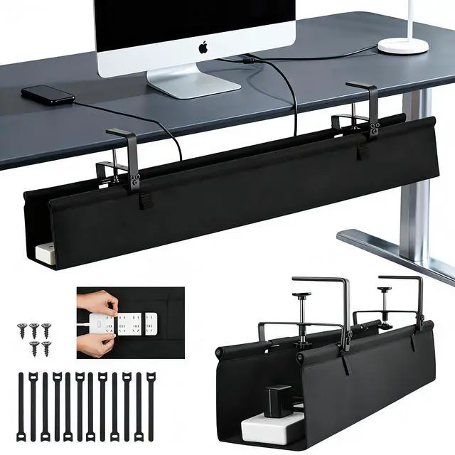 Durable & Family-Safe Material: Made of flame-resistant Oxford fabric with a reinforced bottom, this cable management tray eliminates clutter on the floor or desk. It helps prevent tripping hazards and protects cables from vacuum accidents. Available in 36" and 48" sizes to suit offices, gaming setups, and more.