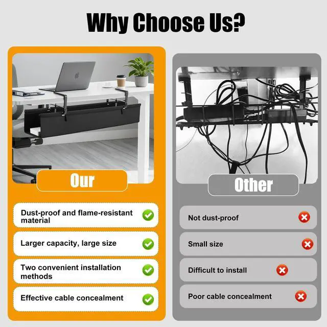 ^^ 24-Month Worry-Free Support: We stand behind our under desk cable management solution with a full two-year warranty. If you have any questions, our customer service team is here to help. Your satisfaction is our top priority!