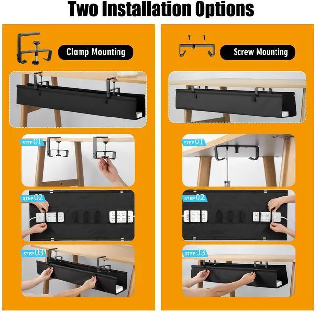 ^^ Two Installation Methods: Enjoy quick and easy setup with either clamp-on or screw-mounted installationno drilling required. Built with a sturdy structure and 12 secure straps, this desk cable management system provides a durable and reliable cord organization solution. ^^