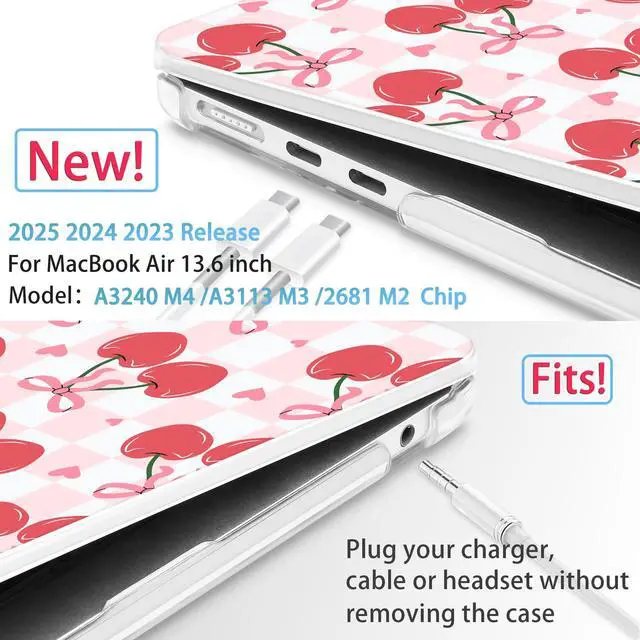 Mektron for 2025 M4 MacBook Air 13.6 Inch A3240 Case Fits 2023 A2681 M2 2024 A3113 M3 Chip with Liquid Retina Display Touch ID, Printed Plastic Hard Shell for MacBook Air 13.6", Cherries Bows C353