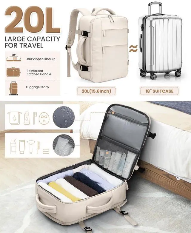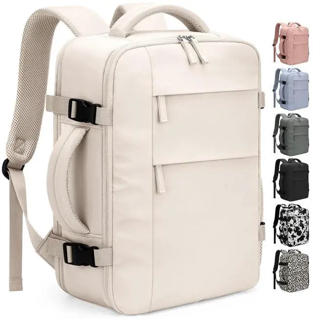 Pritent Travel Backpack for Women Man, Waterproof Personal Item Travel Bag Airline Approved Laptop Backpack Bookbag Weekender bags for Business,Travel, Work Fits 15.6 inch Laptop(Medium,Beige)