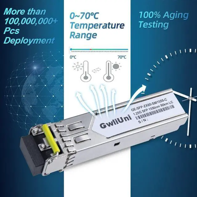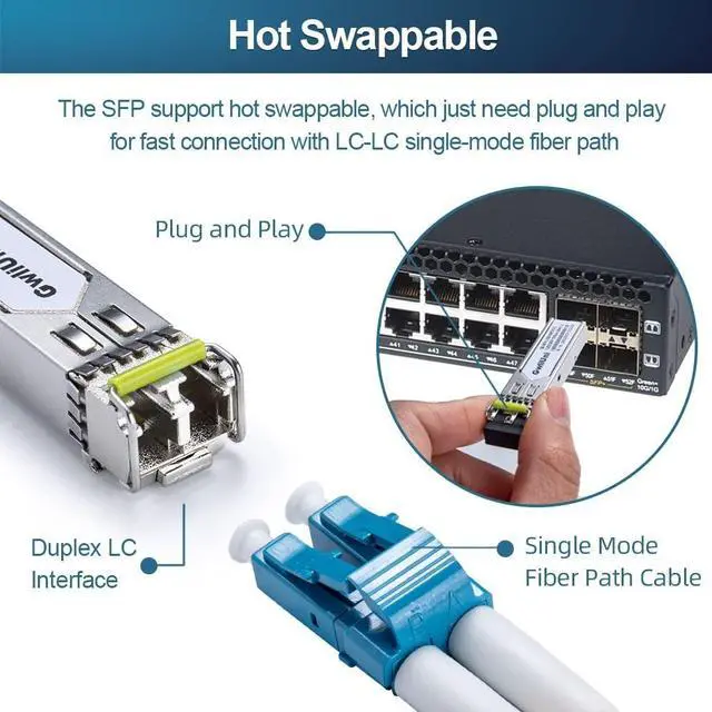More than 1000k+ pcs SFP are already deploy in global market ^^ 100% Aging TestingThe gold finger of SFP module are carefully examined to reach the perfect combination of circuit assembly precision. All SFP are 100% aging testing after assembling to ensure that all sold modules are stable and high reliability ^^ Fast & Convenient Connection The SFP support hot swappable, which just need plug and play for fast connection with LC-LC Single-mode fiber path.