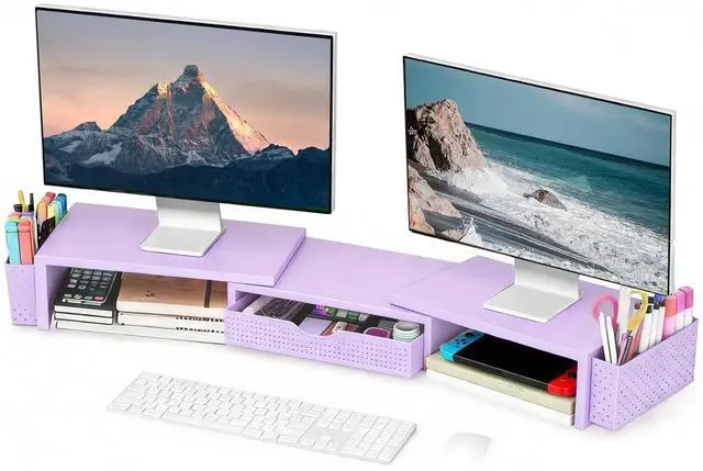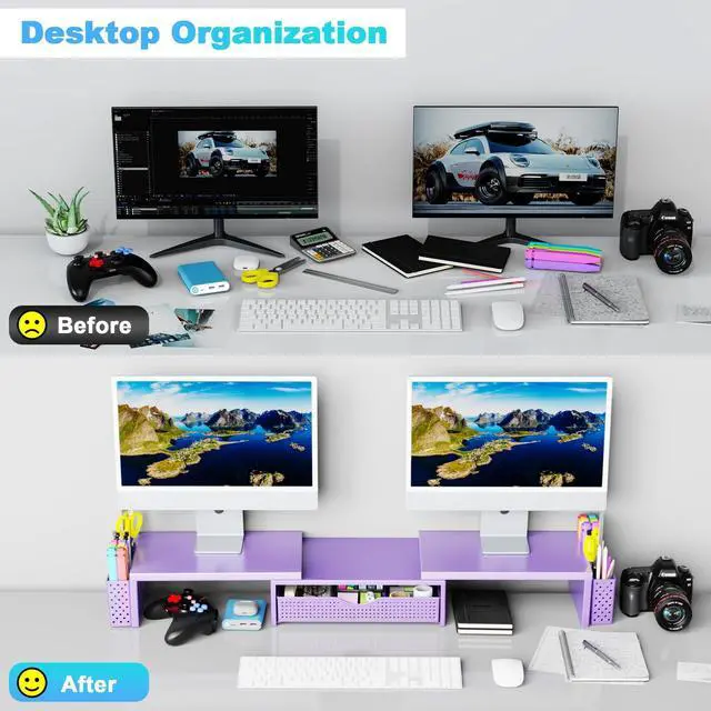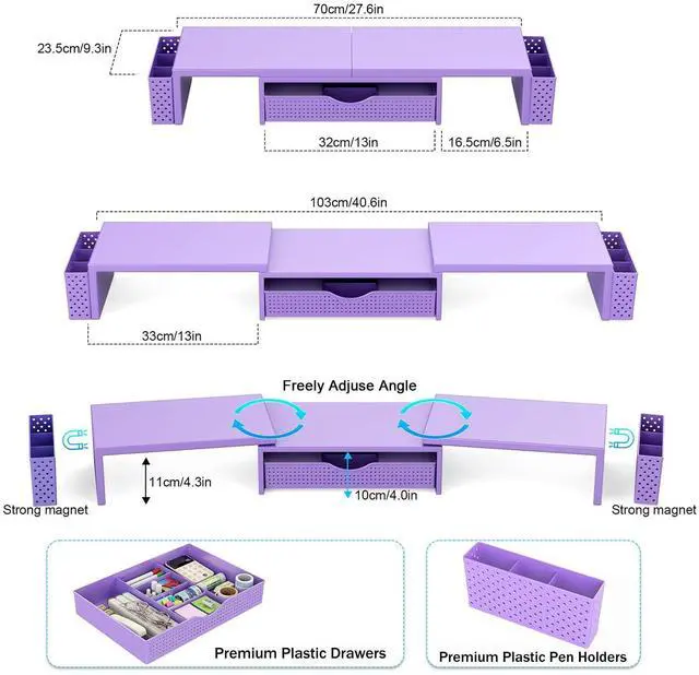 Dual-screen office efficiency improvement: This desktop organizer is equipped with a dual-display stand, which can place two monitors at the same time, effectively expanding the workspace. It also has adjustable length ( 27.6 - 40.6 inches) and angle to provide you with a better viewing experience.