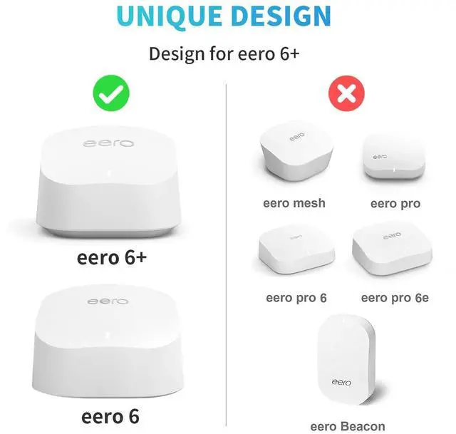COMPATIBLE WITH EERO 6 PLUS MESH WI-FI SYSTEM - Designed specifically for use with eero 6+ Mesh Wi-Fi System, this wall mount stand bracket is the perfect complement to your high-performance Wi-Fi network. ^^ EASY INSTALLATION & DISASSEMBLE - The installation process is simple & easy to get your eero 6+ extender device up & running in no time. Easy to hide the wire into the groove. ^^ SLEEK & MODERN DESIGN - Made of premium materials and featuring a sleek, modern design, this eero 6+ tri-band mesh wi-fi wall mount stand bracket is not only functional but also adds a touch of style to your home.