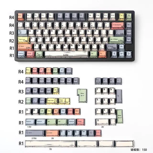 Compatibility: This set of keycaps has a total of 150 keys and includes multiple sizes of keycaps to fit most 60%, 65%, 95% cherry mx switches mechanical keyboards ^^