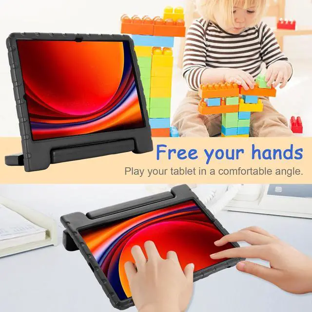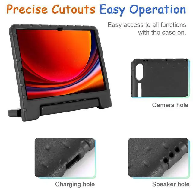 Features: * Made of lightweight sturdy child friendly and thick EVA foam to guard your tablet at home or in the classroom. * Anti-slip soft outer layer case provides great handling and extra cushion for impact resistance. * Easy-to-grip, large handle designed to comfortably hold with smaller children's hands. * The handle is also a kickstand with 2 viewing angles for watching movies & typing. * Perfect for all families with children, no worry to break the tablet by wild kids.