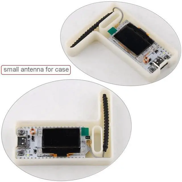 The gray lora antenna is small, so it can be put into the white lora case. But other big 915 antennas can not be used with lora board when lora case installed. ^^ The lora case has a strict requirement in size of lora antenna fitting with it. It means not all antennas working with it. ^^ This 915MHz LoRa board comes unassembled, soldering is required for you, not equipped with lithium battery. ^^ When you use this 915MHz oled wifi lora 32 board, you need to use 2pcs together, one for receiving data and another sending.