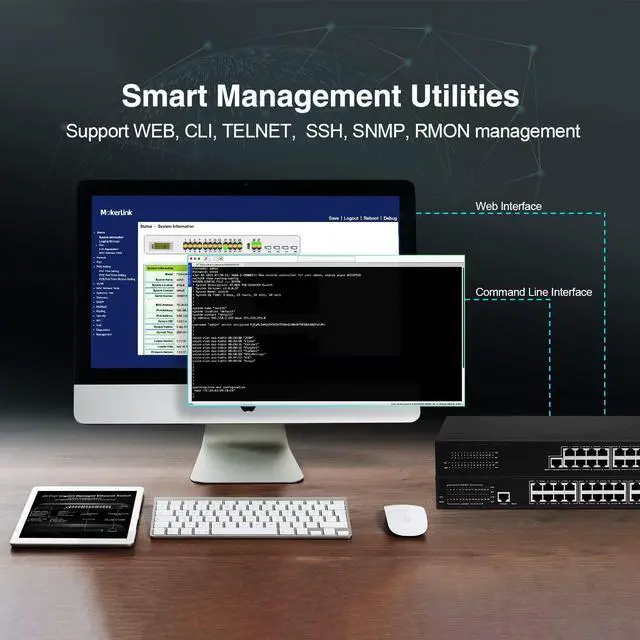 ^^ Powerful Management: Support various management methods such as Web, CLI (1 console port, Telnet, SSH), SNMP, RMON. The WEB interface has been professionally designed, beautiful, concise and easy to use, with comprehensive and rich CLI commands, suitable for ordinary and professional network management.
