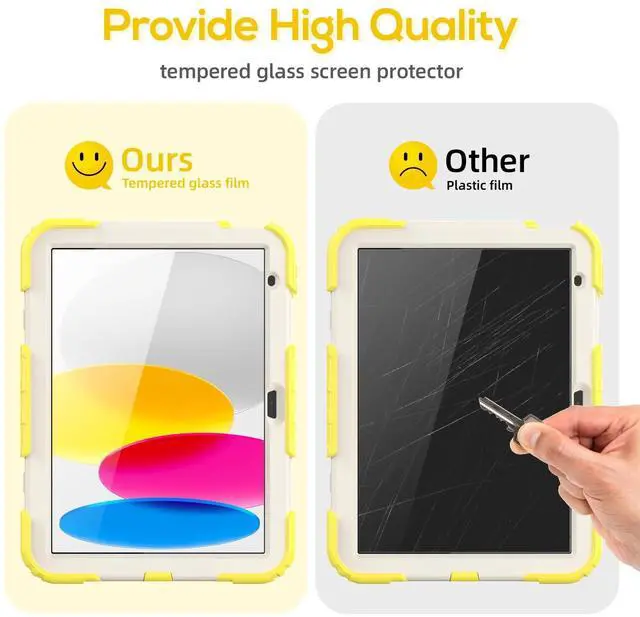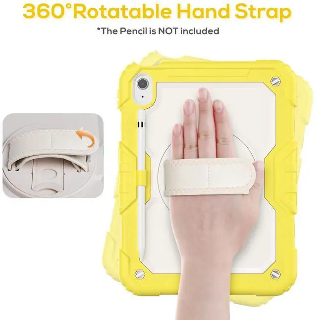 Hand Strap: Rotatable kickstand allows multi-angle viewing, pretty easy for movie watching and kids boys girls toddlers learning on the go. Soft rotating handle strap prevents falling of iPad 9th generation, featuring convenient use for teachers, students, waiters, doctors, nurses and conference presenters ^^ The removable shoulder strap lets you attach it to any of the two corner holes of the iPad 10th generation case, making it easy to sling over your shoulder on your commute. Perfect for hiking trips where you can quickly grab iPad to snap a photo. Its portable design is perfect for kids on walks and trips, and for students at school.