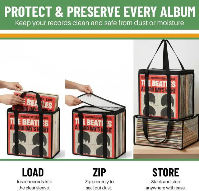 PROTECT YOUR COLLECTION: Keep your favorite records free from dirt, moisture and dust. You can stack on a shelf or in a closet, or slide under a bed for easy, out-of-the-way music collection organization ^^