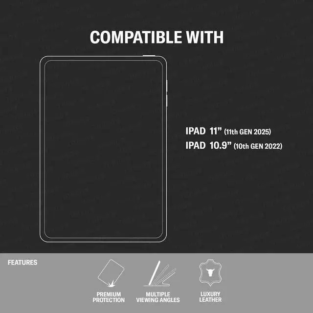 COMPATIBILITY - TORRO leather iPad case designed and crafted exclusively for iPad 11th / 10th Generation (2025 / 2022 release). The precision fit ensures full unrestricted access to the screen, camera, buttons and charging ports.