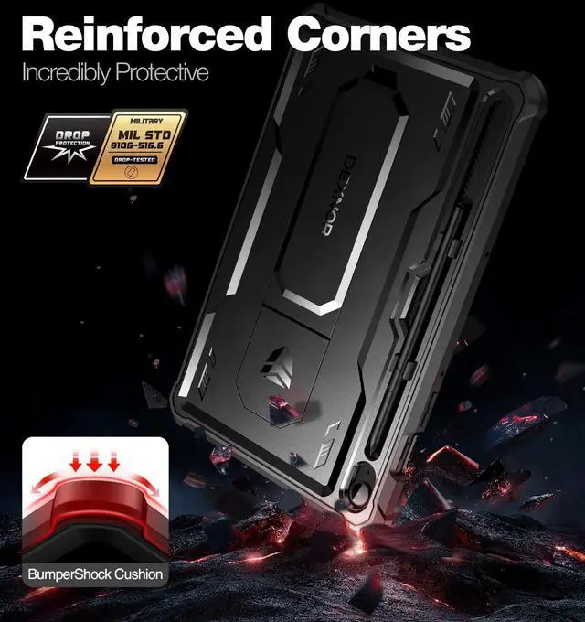 CompatibilityExclusively designed for Galaxy Tab S10 Lite /S10 FE/S9 FE. Unique appearance with hollow back design that it is easy to dissipate heat without increasing weight. Precise cutouts, easy access to all buttons, ports and camera. ^^ Dual-layer Hybrid Military Grade Drop ProtectionConstructed in two parts, a front protective piece with raised edges to keep your Galaxy Tab S10 Lite /S10 FE/S9 FE screen up off surfaces and a back piece that's made of both shock-absorbing TPU and hard, drop-resistant Polycarbonate materials. ^^ Built in Screen Protector and Pen HolderThe Galaxy Tab S10 Lite /S10 FE/S9 FE Case with built-in screen protector prevents your Samsung Tab S10 Lite /S10 FE/S9 FE 10.9 inch screen scratches without compromising sensitivity.