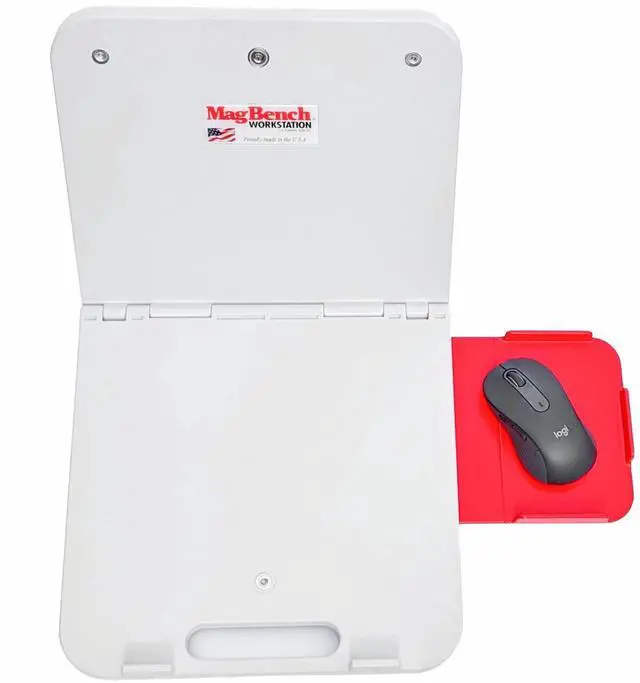 Mousepad attachment for use with a MagBench workstation. Press the three grooves on the mouse pad onto the molded ribs on either side of the Utility or Standard MagBench.