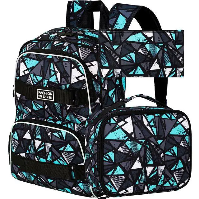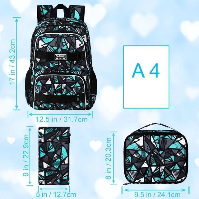 ^^ Boys Backpack Set: 3 Pieces Design, backpack for boys (17"x13"x 6.5" ) + lunch box (9"x 8.5" x 3.5" ) + pencil bag, all in one, meet your daily needs whether you are going to school or traveling.