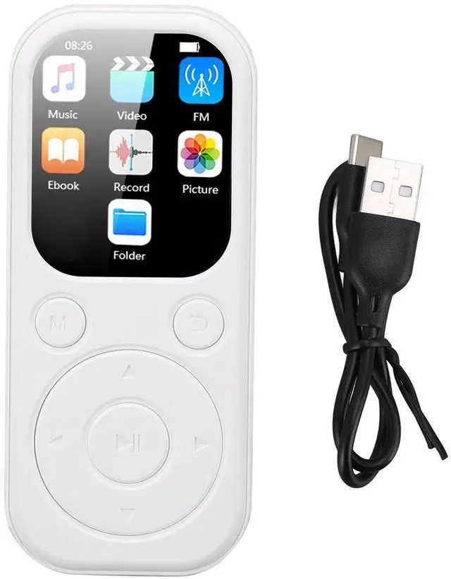 SMALL DESIGN: 3.6 in (92mm) long, 1.57 in( 39.8 mm) wide, 0.31 in (8mm) thick, 2.01 in screen, 26g lightweight, portable and stylish MP3 player. Suitable for exercising, running, jogging, traveling and hiking without any burdens. The nice companion for your exercise
