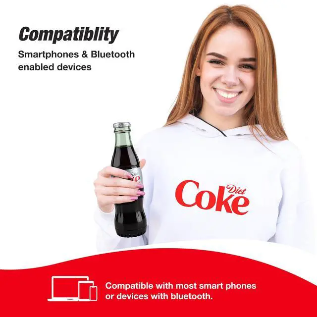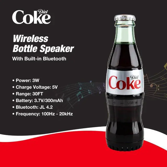 ^^ Long-lasting Battery Life: With an extended battery life, the Diet Coke Bottle Shape Bluetooth ensures hours of uninterrupted music playback. Whether you're spending a day at the beach or camping in the great outdoors, you can count on this speaker to keep the tunes flowing.