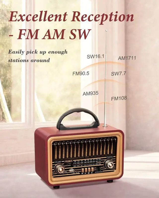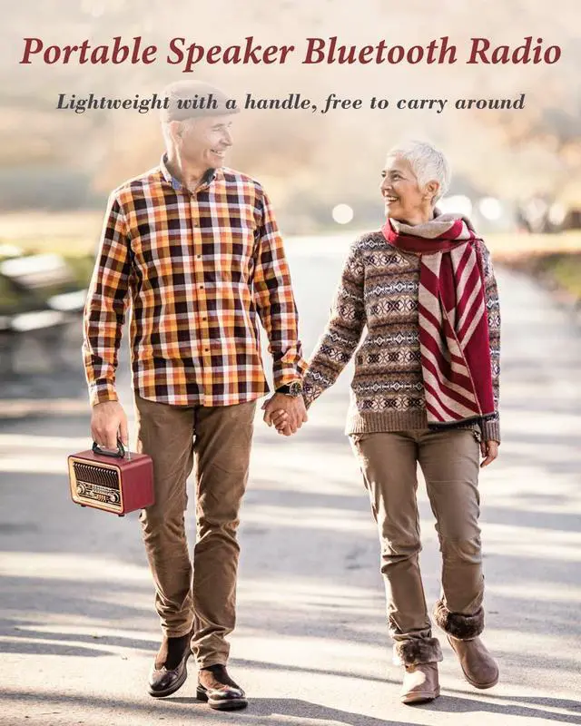 makes this retro radio a great present to anyone, especially the elderly and music lovers. Suitable for any occasions including father's day, birthdays, weddings, anniversaries, housewarming party and Christmas. we guarantee a 12-month warranty, 30-day money back and 24/7 customer service to make it no risk for you to purchase this fm radio. ^^ Perfect Father's Day Gifts This radio is very popular with father, elderly, Middle-aged people and kid, that is one of the Father's Day gifts that will continue to bring joy to your father, family members and friends. If you want to express your love for them choose it! ^^ The Perfect Christmas Gift & Holiday DecorThis Bluetooth retro radio speaker doubles as charming holiday decor. Its exquisite wood grain finish blends seamlessly with rustic, vintage, or country-style Christmas themes - perfect for adorning your living room, mantel, bookshelf, or as a unique nightstand accent.