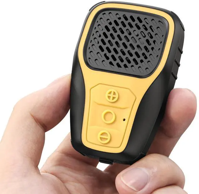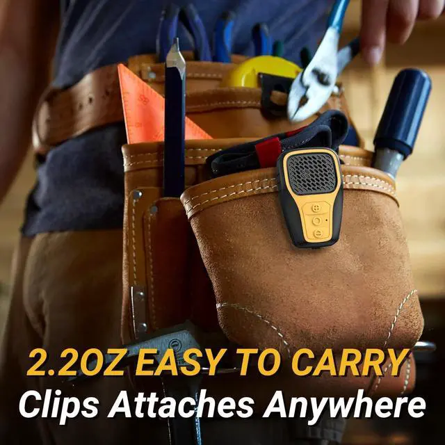 ^^ DURABLE & WATERPROOF: Enjoy up to 4-6 hours of music on a single charge without worrying about power. With an IP67 waterproof rating and a sturdy shell, this wireless clip-on speaker is ready for all your work and outdoor activities.