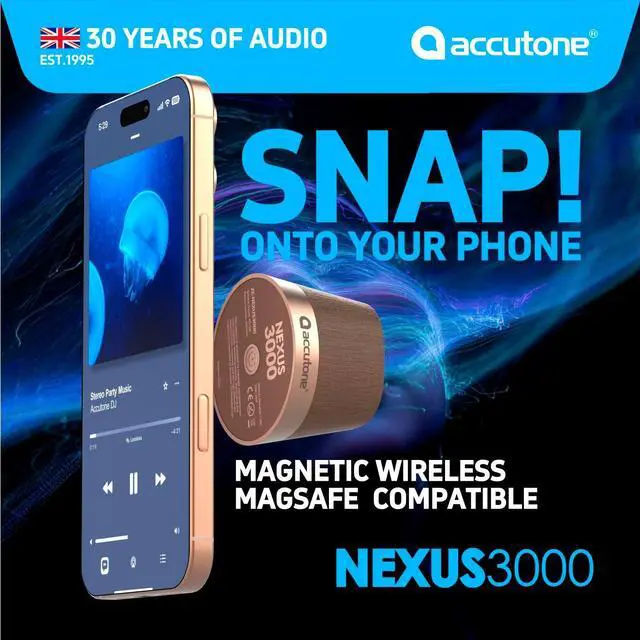 True Wireless Stereo Pairing - Support two NEXUS 3000 speakers play synchronously connection, form a wireless L & R channel 2.0 sound system to deliver you a small theater performance. ^^ Magnetic Attached - Mag-safe bluetooth speaker with powerful magnetic base, easily attaches to any metal surface and works with any device support Mag-safe. ^^ Qi Charging - NEXUS 3000 can works as an wireless charger support up to 15W charging power. Allow you enjoy the a non-stop music performance. ^^ Powerful Audio & Portable - Despite its compact size comes with a 40mm driver delivers clear audio, powerful and strong base 5W output, ensuring audio performance.