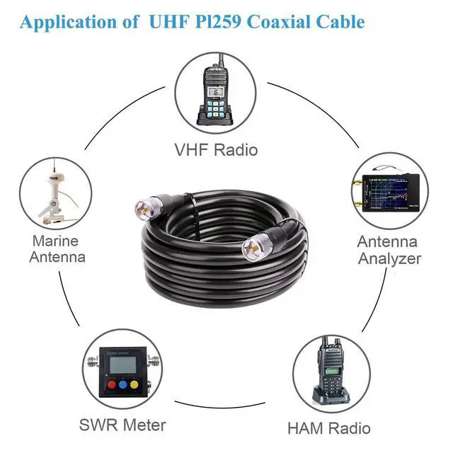 It is very sturdy that could work well in outdoor environment. ^^ ApplicationsThis pl259 male to male coax cable could be used for CB ham radio, HF amateur radio, marine boat VHF radio, antenna, swr meter, surge protector, Walkie Talkies
