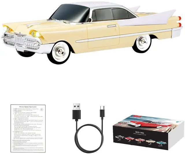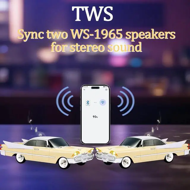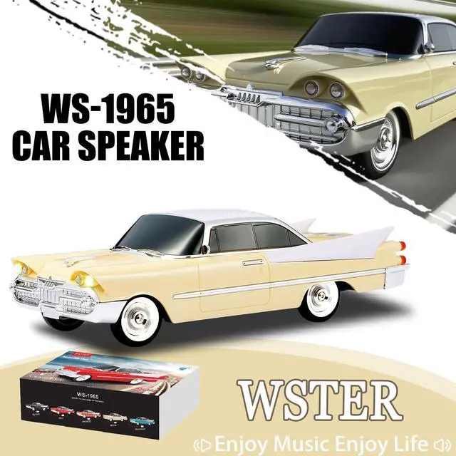 Powerful HD Sound in a Retro Package Get immersive audio with a stylish sports car-inspired speaker a unique Bluetooth replica with HD sound in a compact design ^^ Wireless Freedom with TWS Pairing Connect two WS-1965 speakers via TWS for a true stereo experience. Enjoy wireless music from any Bluetooth device ^^ Built-in Microphone for Hands-Free Calls Answer calls directly through the speaker with the integrated microphone perfect for workspaces, study areas, or casual chats ^^ LED Party Lights + FM + USB/TF Support Light up any space with built-in LED party lights. Supports USB drives, TF cards, and FM radio for all your music needs ^^ Portable & Perfect as a Surprise Gift Compact and easy to carry, this is more than a speaker it's a cool collectible and a standout surprise gift for car lovers and tech fans alike