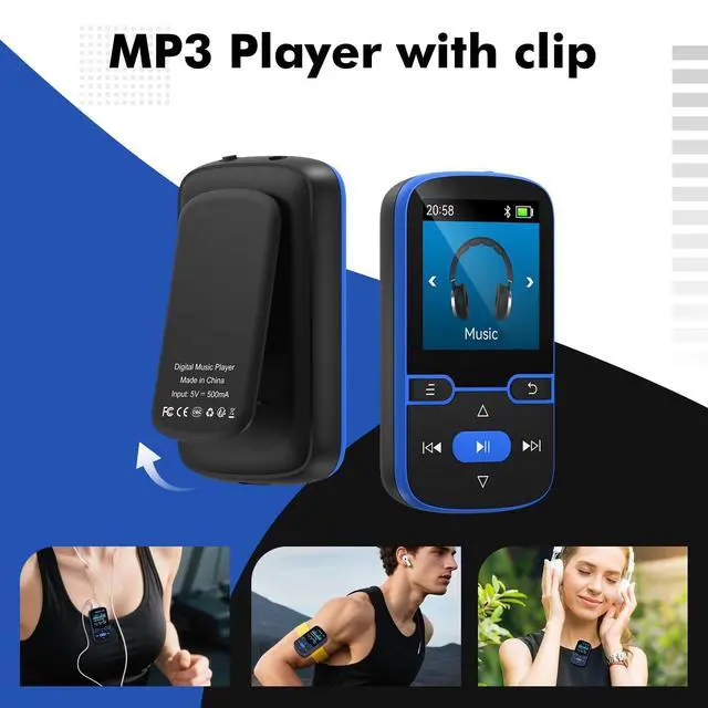 [Portable Clip MP3 Player with Bluetooth 5.3 ] This Bluetooth MP3 player easily connects to your Bluetooth headphones or speakers for a seamless listening experience.