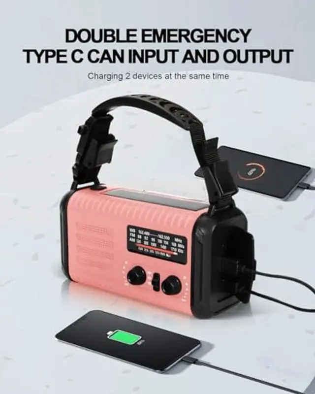 • UPGRADED USB C INTERFACE - The solar hand crank radio with bidirectional USB C interface, can input power for the radio, and also output power for devices. The radio's crank lever and solar panel are both capable of regenerating enough power to keep the 20000mAh(74000mWh) rechargeabl