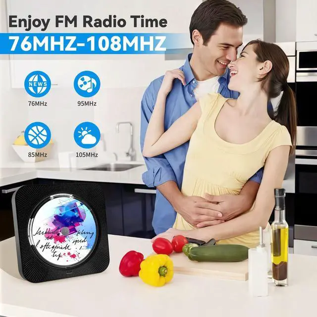 ^^ Ideal GiftThis radio CD player is easy to use and perfect for music enthusiasts and language learners. It is an excellent choice for home decoration and music player for kids, it is a practical and creative gift for family and as a practical choice for holiday gifts (Father's Day gifts, Mother's Day gifts, Thanksgiving and Christmas gifts). This bluetooth speaker CD player's innovative and stylish appearance will enhance your lifestyle, allowing you to relax during gatherings, yoga, or music. ^^ Packaging CD player * 1, remote control * 1, 5V-2A USB adaptor * 1, user manual * 1, 3.5 mm male-to-male audio cable * 1, 2.3 m dedicated power cord * 1