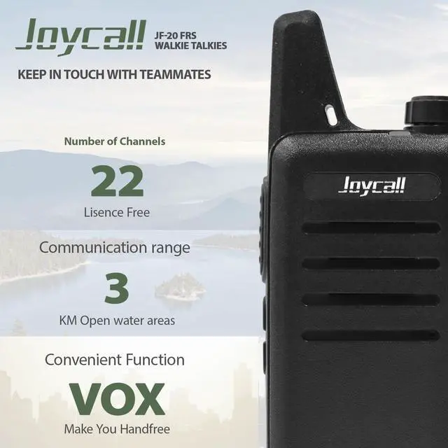 ULTRA SLIM SERIES WALKY TALKY: At only 0.75 inches thick and weighing 113 grams, the Joycall JF-20 Walkie Talkie is designed for users who prefer a slimmer walkie talkie. Small in size but powerful in function and easy to use, no license required! ^^