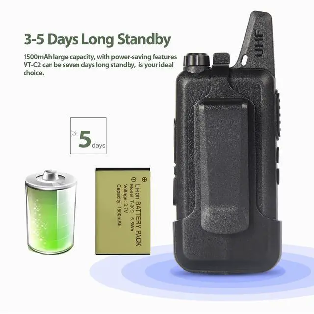 LONG RANGE WALKIE TALKIES: Joycall two way radio set of 2, can be used indoors and outdoors. With superior penetration, communication ranges up to 3km in open areas such as plains, suburban seaside areas a. Designed with VOX for communicating handsfree. Suitable for use by all ages. ^^ ULTRA LONG STANDBY - 72 HOURSThe 1500 mAh rechargeable lithium battery supports 18 hours of typical use or up to 72 hours of standby time. It will alert you when the battery level is low and can be can be recharged by connecting the USB cable to the radio and to a USB-charger. I'm sure it will be your reliable communication partner in the outdoors.